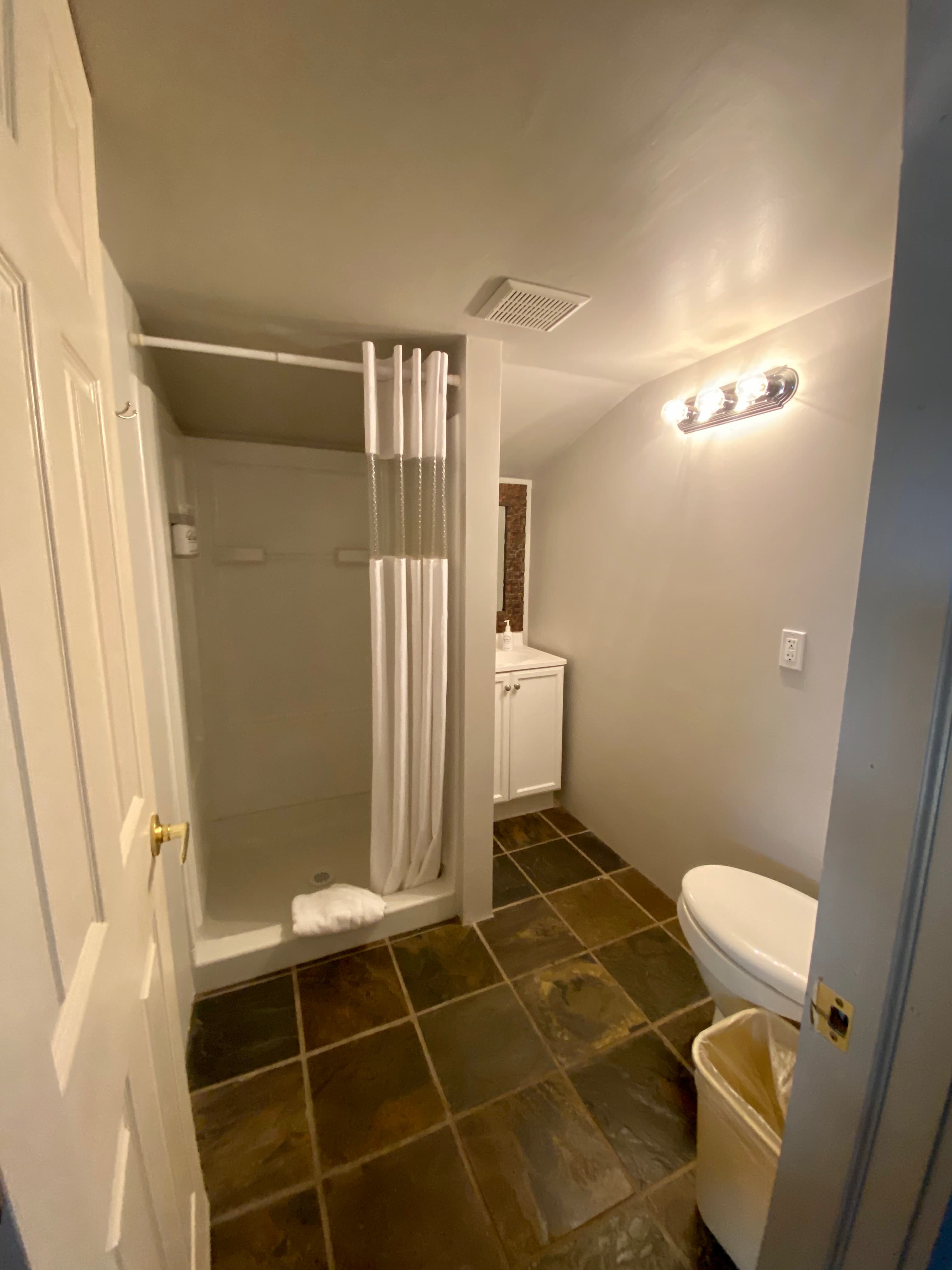 - One bathroom with a walk-in shower